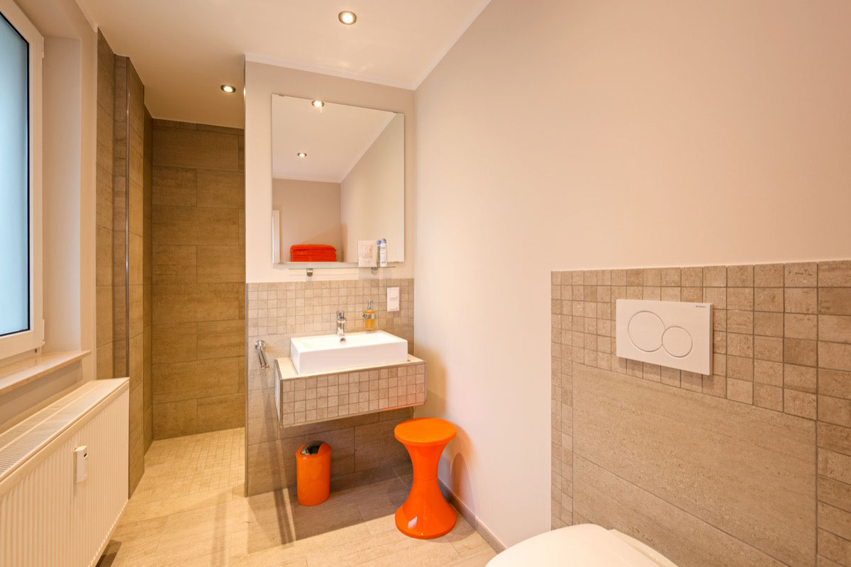 Geschafft! Nach sehr intensiven 20 Minuten, kannst du dich in unsere einladenden Dusch-Badezimmer zurück ziehen. Hier kannst du dich in aller Ruhe erholen und frisch machen. Neben Handtüchern, Duschgel und Föhn, steht für dich auch ein Deodorant zur Verfügung.